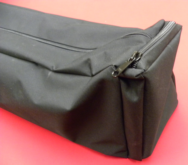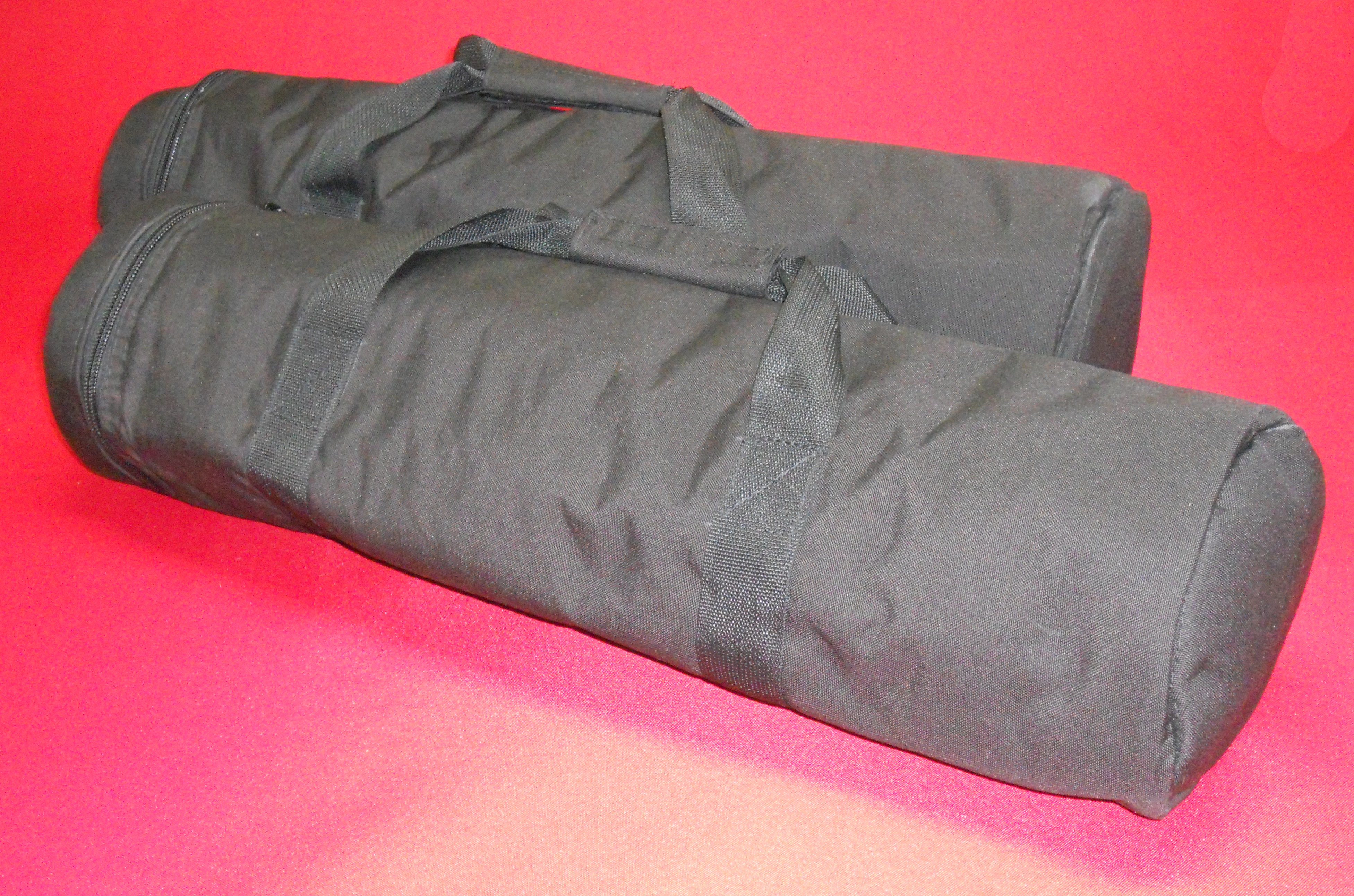 Below is a chain of emails we exchanged last year on some bags that were 4 inches in diameter, about 36 inches long with foam rubber in the ends, the zipper down one end and long handles you can throw over your shoulder.